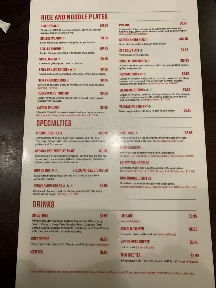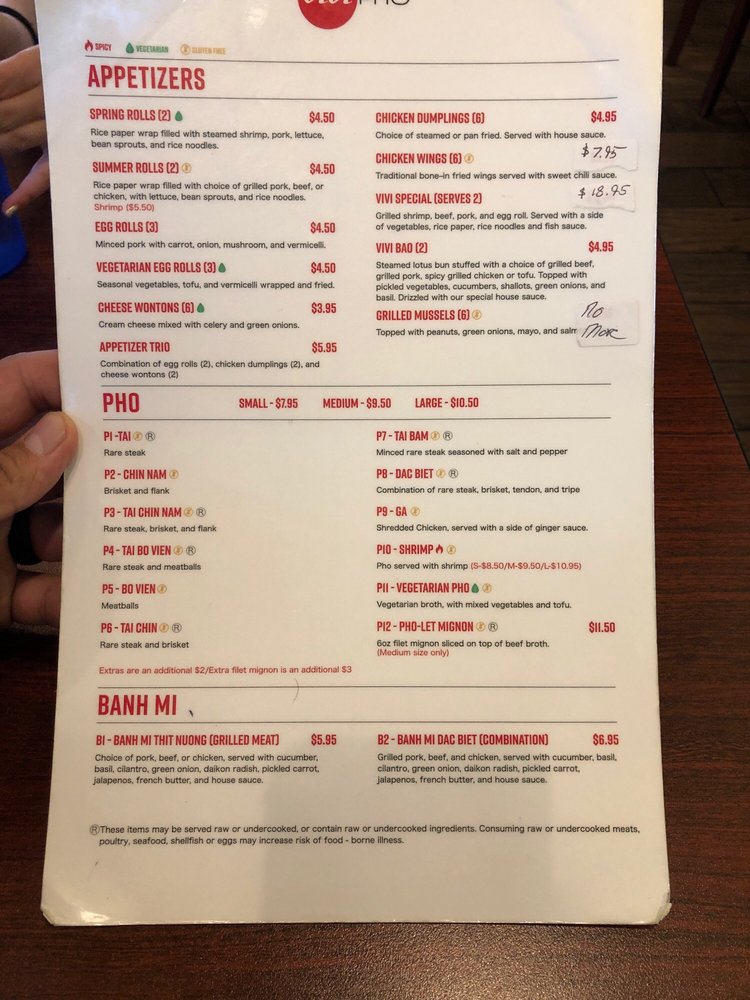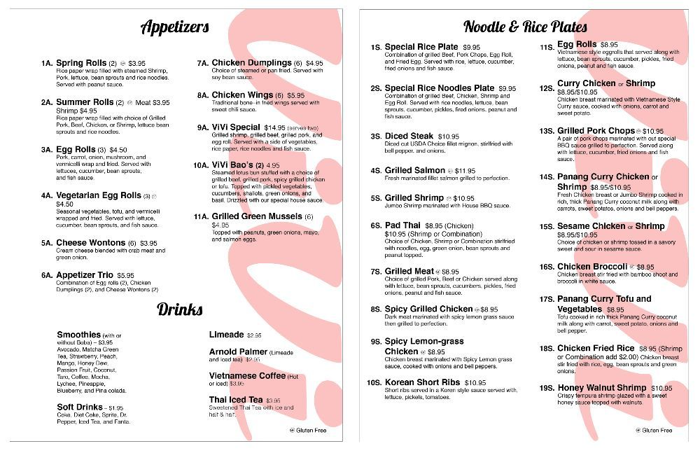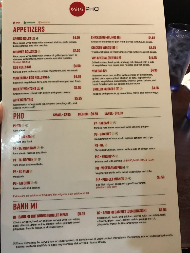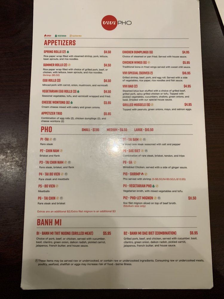ViVi Pho in Glendale, Colorado offers a wide range of Vietnamese cuisine with a focus on pho, accompanied by a variety of drinks and appetizers. The menu includes traditional pho options such as Rare Steak (Tai Pho) and Brisket and Flank (Chin Nam Pho), all gluten-free. Customers rave about the flavorful broth, generous portions of meat, and fresh spring rolls. The restaurant also caters to vegetarians with options like lemongrass tofu. With fast and efficient service, ViVi Pho is praised for its delicious food, friendly staff, and quick delivery. Whether dining in or ordering takeout, customers appreciate the casual atmosphere and the consistent quality of the dishes. Don't miss out on their Vietnamese Coffee, smoothies, and refreshing drinks to complement your meal. Indulge in a satisfying Vietnamese experience at ViVi Pho.